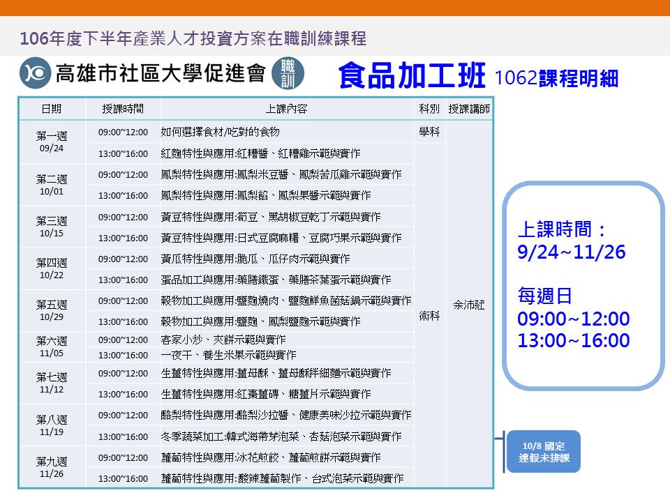 106年度下半年產投課程預計開設: