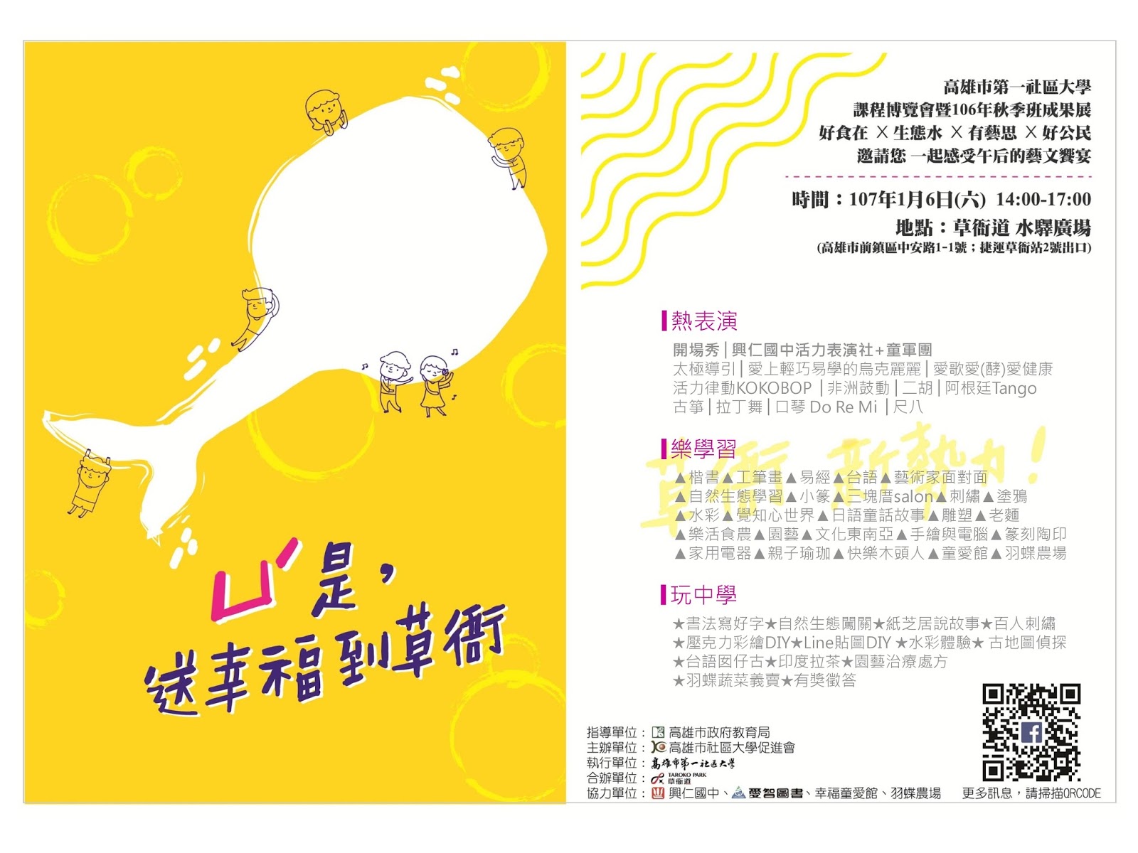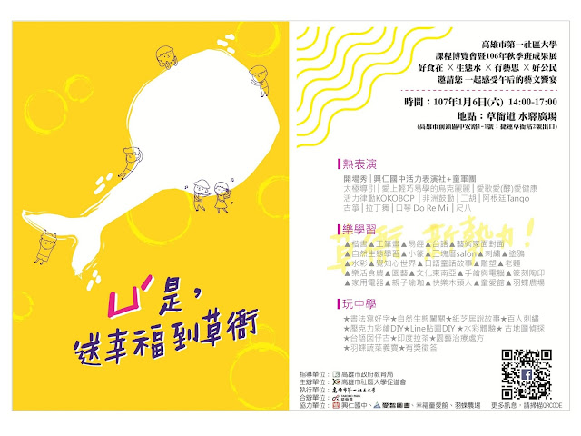 【活動】高雄市第一社區大學課程博覽會暨106年秋季班成果展將於1/6在草衙道舉行!